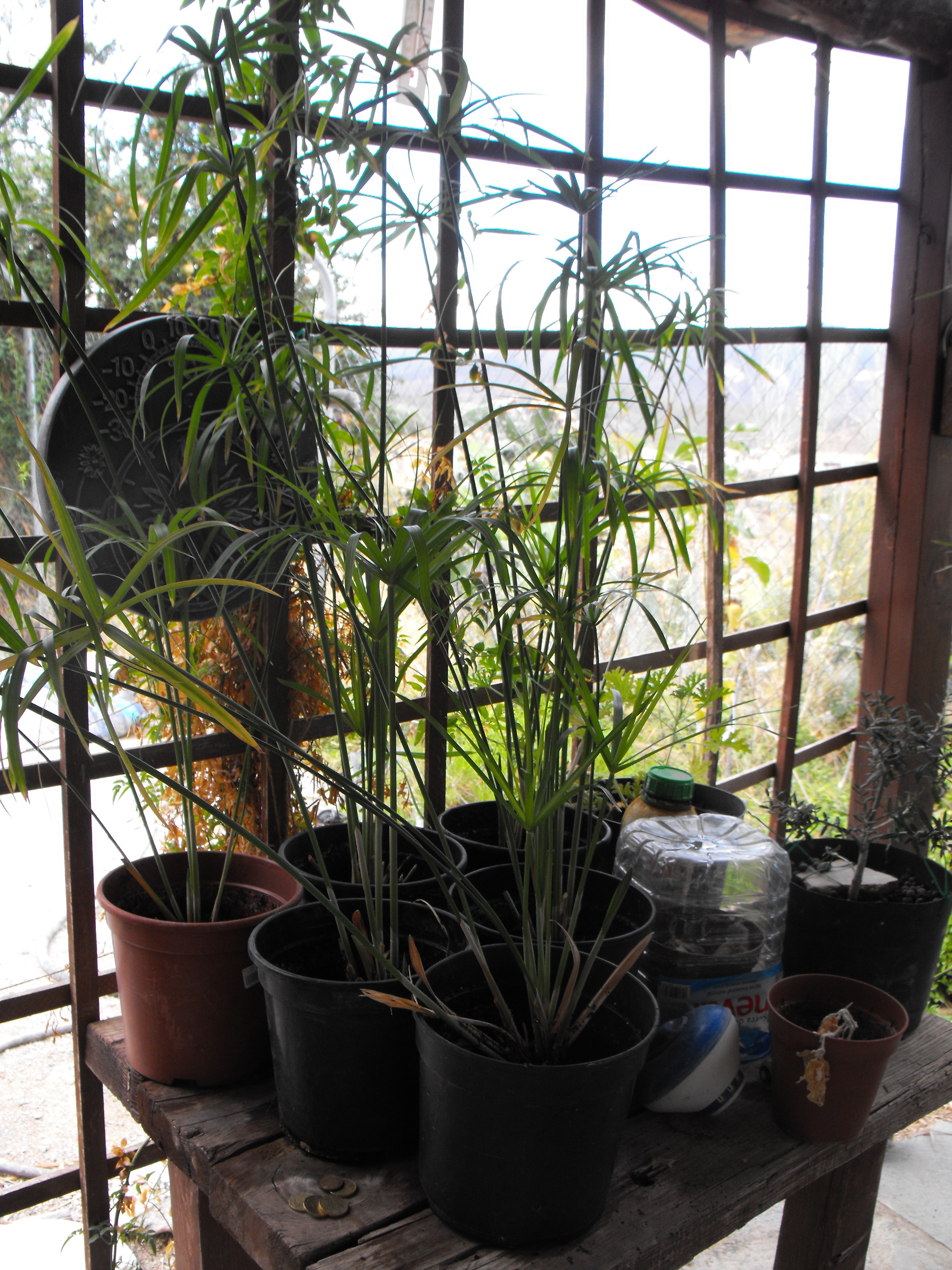 We have struggled keeping water plants here, particularly as the Koi are now so big and do like to uproot them and eat them. A couple of years ago however, we found a plant growing wild and brought a small piece back home. It is a Large Umbrella Palm ‘Cyperus Alternifolis’….. and Nick regularly bends the heads down into the water and lets them root and then re-pots them. We currently have a number of them ready for sale and hope to take them to the local gardening club and sell some.