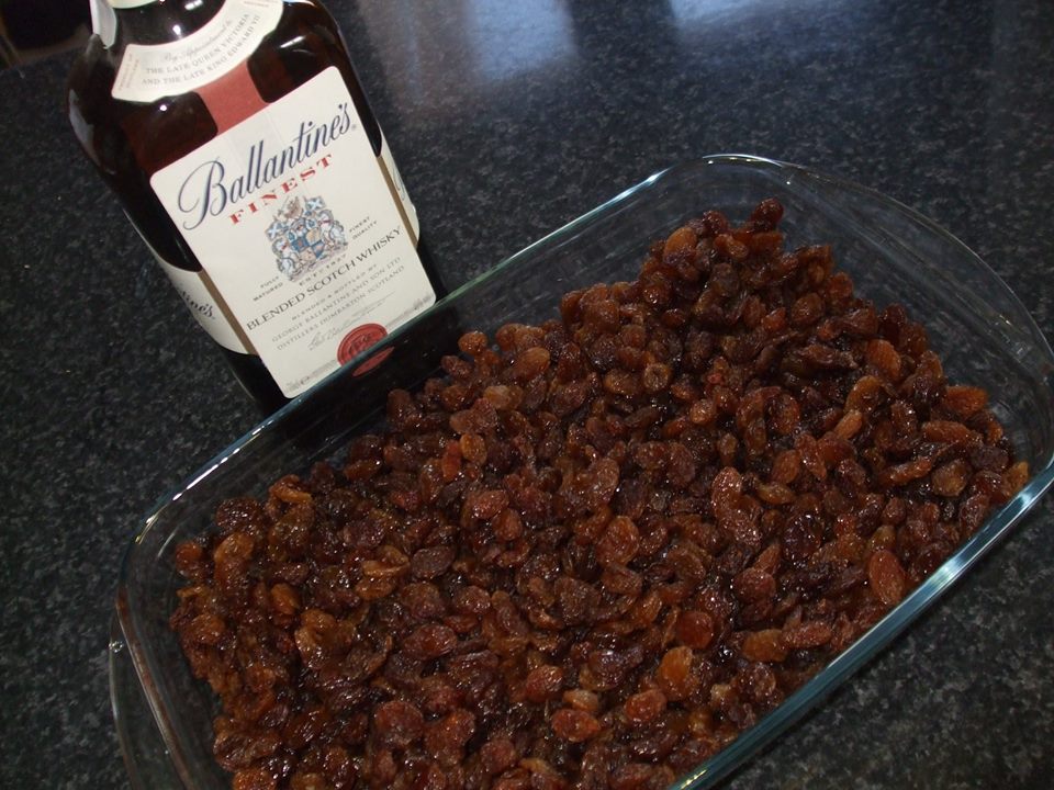 First pre-heat your oven to about 130ºC and, in an oven-proof dish, add the Whiskey to the Sultanas and stir through.